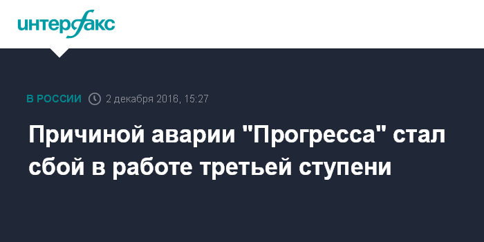 Москва. 2 декабря. INTERFAX.RU - Вероятной причиной аварии космического грузовика "Прогресс МС-04" стал сбой в работе систем третьей ступени ракеты-носителя "Союз-У", выводившей его на орбиту.