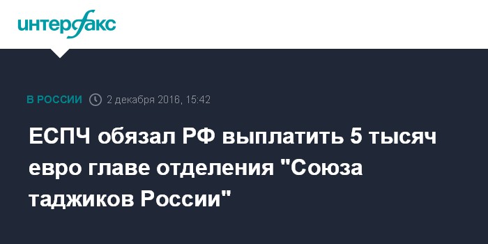 ЕСПЧ обязал РФ выплатить 5 тысяч евро главе отделения "Союза таджиков России"