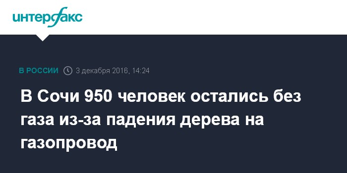 В Сочи 950 человек остались без газа из-за падения дерева на газопровод