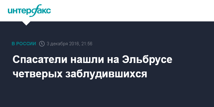 Москва. 3 декабря. INTERFAX.RU - Группу из четырех человек, сбившуюся с пути на склоне Эльбруса, спасатели нашли и спускают к подножью, сообщил в субботу агентству "Интерфакс" оперативный дежурный Эльбрусского высокогорного поисково-спасательного отряда.