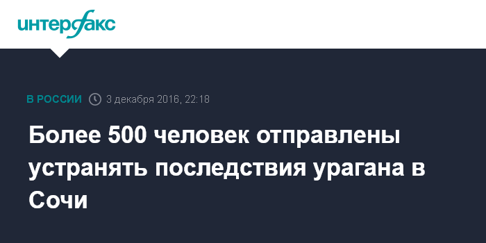 Более 500 человек отправлены устранять последствия урагана в Сочи
