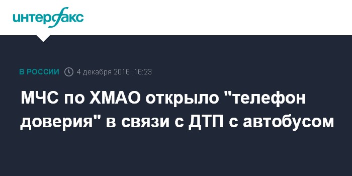 МЧС по ХМАО открыло "телефон доверия" в связи с ДТП с автобусом