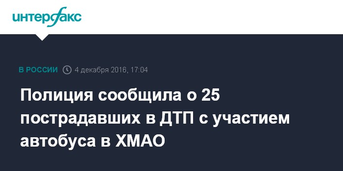 Москва. 4 декабря. INTERFAX.RU - Количество пострадавших в ДТП в ХМАО, по предварительным данным, увеличилось до 25 человек, сообщила "Интерфаксу" в воскресенье пресс-секретарь УМВД по ХМАО Ольга Абмайкина.