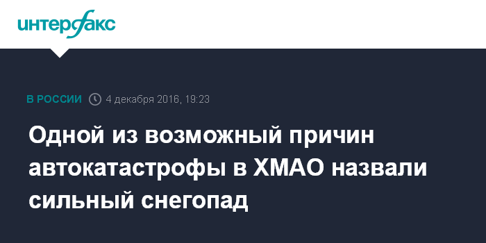 Одной из возможный причин автокатастрофы в ХМАО назвали сильный снегопад