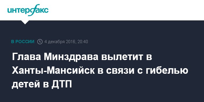 Глава Минздрава вылетит в Ханты-Мансийск в связи с гибелью детей в ДТП