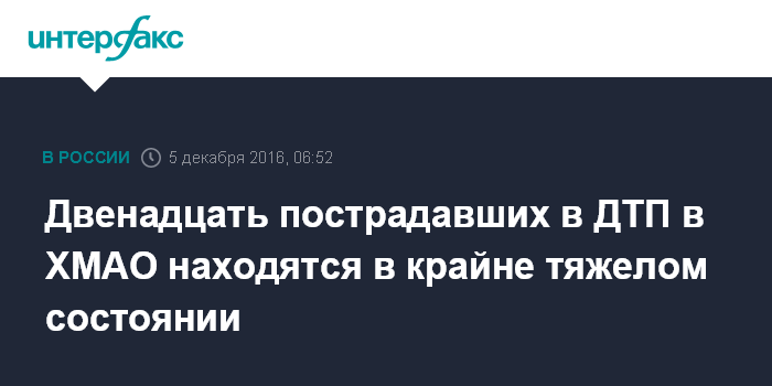 Двенадцать пострадавших в ДТП в ХМАО находятся в крайне тяжелом состоянии