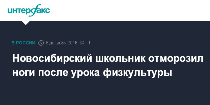 Москва. 6 декабря. INTERFAX.RU - Следственный комитет в Новосибирской области проводит проверку по факту обморожения новосибирского школьника после урока физкультуры, сообщается в понедельник на сайте ведомства.