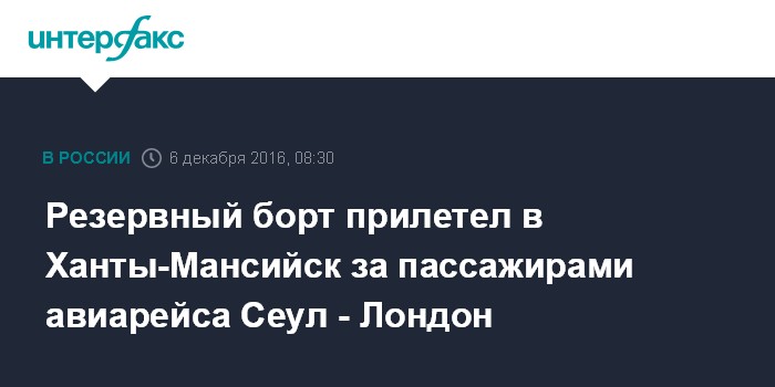 Резервный борт прилетел в Ханты-Мансийск за пассажирами авиарейса Сеул - Лондон