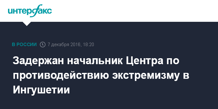Задержан начальник Центра по противодействию экстремизму в Ингушетии