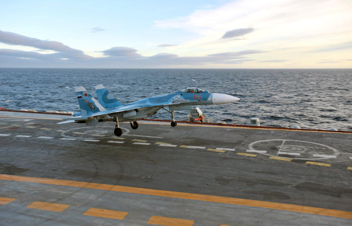 Инцидент с Су-33 в Средиземном море - второй за последний месяц. 14 ноября стало известно об аварии истребителя МиГ-29 при заходе на посадку за несколько километров до "Адмирала Кузнецова", летчик катапультировался.