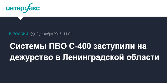 "Новые комплекты ЗРС С-400, заступившие сегодня на ОБД по охране воздушного пространства в северо-западном регионе России, развернуты в Ленинградской области. Они серьёзно усилили систему ВКО на северо-западном стратегическом направлении", - сказал собеседник агентства.