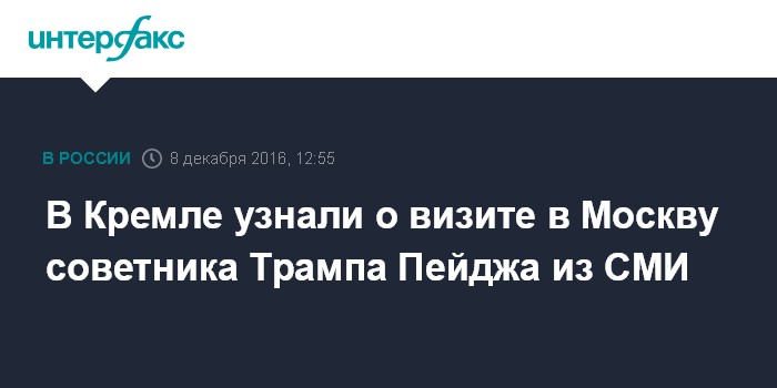 Москва. 8 декабря. INTERFAX.RU - В Кремле не планируют встречаться с Картером Пейджем, выполнявшем функции советника Дональда Трампа в период избирательной кампании, узнали о его прибытии в Москву из сообщений СМИ.