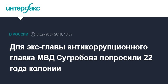 Для экс-главы антикоррупционного главка МВД Сугробова попросили 22 года колонии