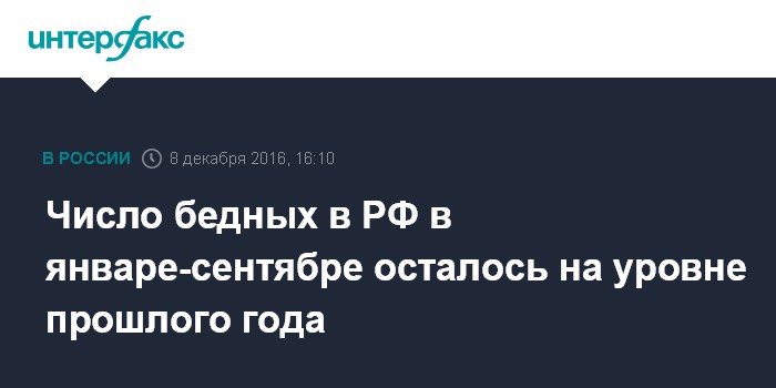 Число бедных в РФ в январе-сентябре осталось на уровне прошлого года