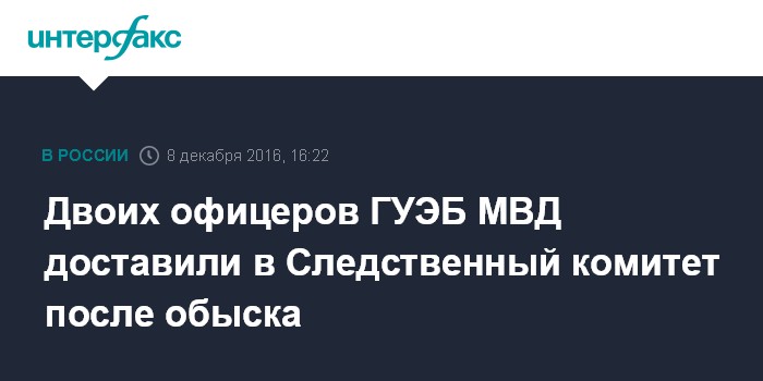 Москва. 8 декабря. INTERFAX.RU - Два офицера антикоррупционного главка (ГУЭБиПК) МВД доставлены в Следственный комитет после проведенного в четверг обыска, их статус пока не определен, сообщил "Интерфаксу" осведомленный источник.
