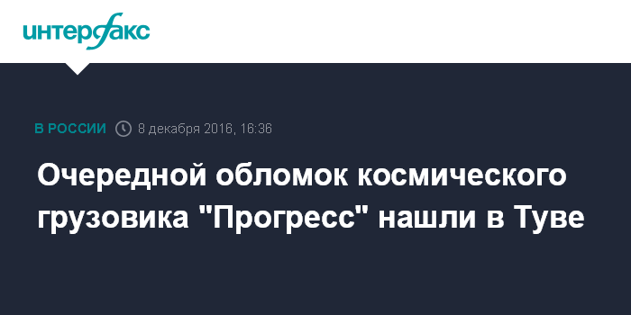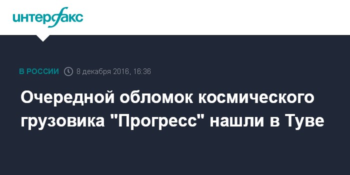 Очередной обломок космического грузовика "Прогресс" нашли в Туве