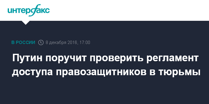 Москва. 8 декабря. INTERFAX.RU - Президент РФ Владимир Путин сообщил, что даст поручение прокуратуре провести проверку приказов ФСИН, касающихся посещения правозащитниками исправительных колоний.