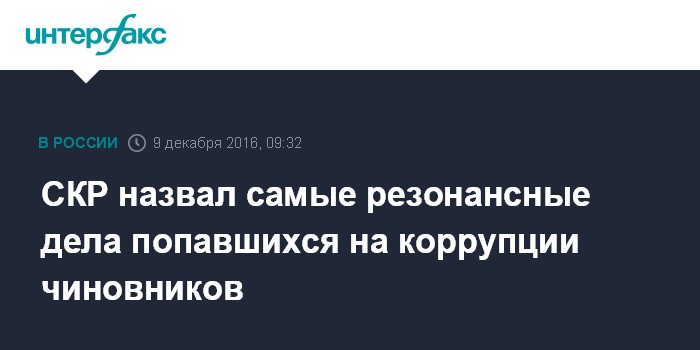 СКР назвал самые резонансные дела попавшихся на коррупции чиновников