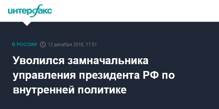 Москва. 12 декабря. INTERFAX.RU - Заместитель начальника управления президента по внутренней политике (УВП) Сергей Смирнов, который курировал взаимодействие с Федеральным Собранием РФ, уволен по собственному желанию.