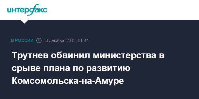 Москва. 13 декабря. INTERFAX.RU - Ряд федеральных министерств откладывает выполнение плана по развитию Комсомольска-на-Амуре, заявил вице-премьер, полпред президента России в ДФО Юрий Трутнев.