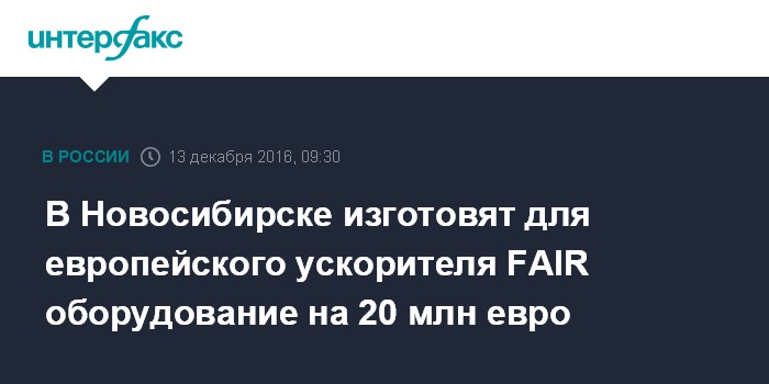 В Новосибирске изготовят для европейского ускорителя FAIR оборудование на 20 млн евро