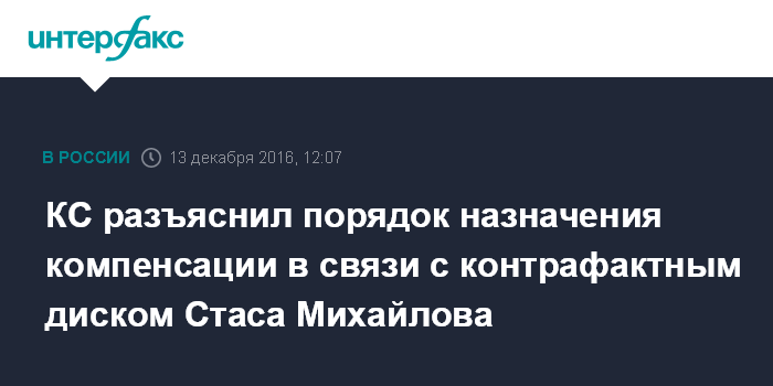 КС разъяснил порядок назначения компенсации в связи с контрафактным диском Стаса Михайлова