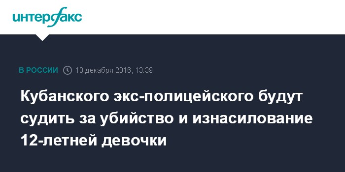Кубанского экс-полицейского будут судить за убийство и изнасилование 12-летней девочки