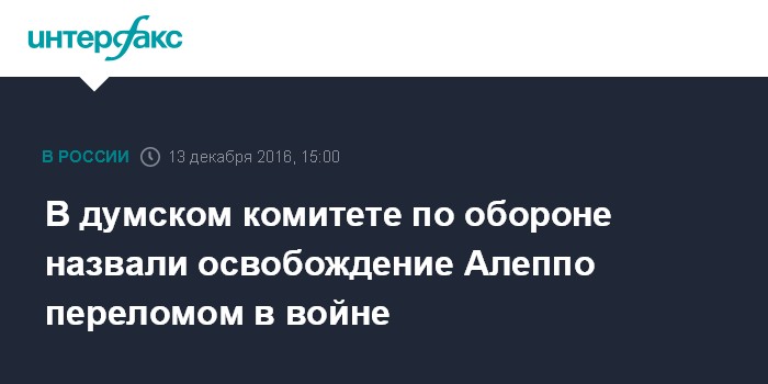 В думском комитете по обороне назвали освобождение Алеппо переломом в войне