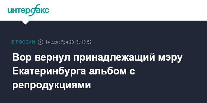 Вор вернул принадлежащий мэру Екатеринбурга альбом с репродукциями