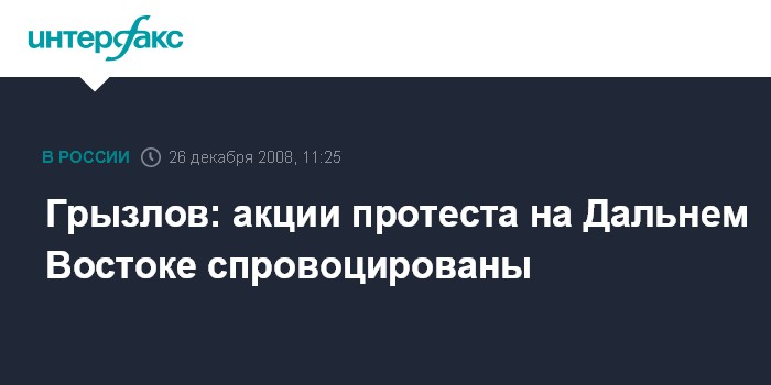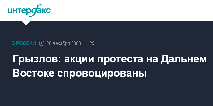 Москва. 26 декабря. INTERFAX.RU - Председатель Госдумы Борис Грызлов заявил, что недавние массовые акции протеста на Дальнем Востоке вызваны не экономическими причинами, а спровоцированы определенными силами.