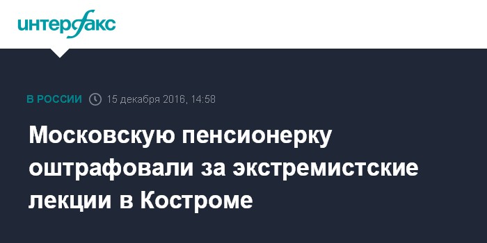 Московскую пенсионерку оштрафовали за экстремистские лекции в Костроме