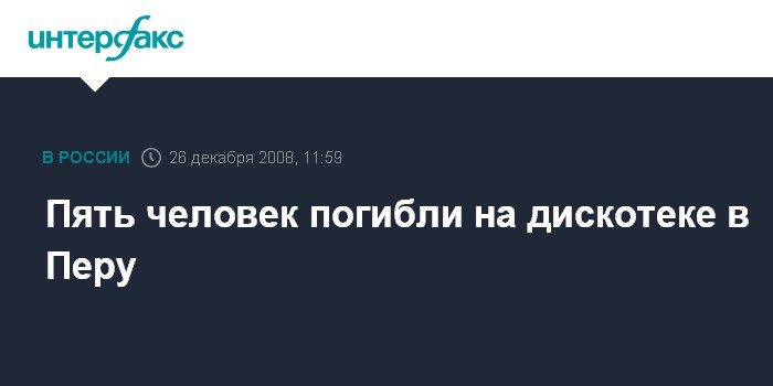 Москва. 26 декабря. INTERFAX.RU - Не менее пяти человек стали в ночь на пятницу жертвами нападения неизвестного на незарегистрированную дискотеку в городе Хулиака на юге Перу, передает перуанская радиостанция "Радиопрограмас дель Перу".