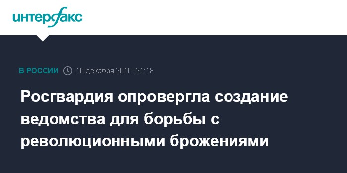 Москва. 16 декабря. INTERFAX.RU - Основной задачей Росгвардии является борьба с терроризмом и защита прав и свобод граждан, заявили в ведомстве, опровергнув тем самым появившиеся в СМИ заявления о том, что Росгвардия была создана для борьбы с "революционными брожениями".