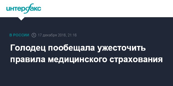 "И страховщики, в том числе по поручению правительства, сейчас приступили к очень серьезной работе по ревизии в целом работы страховых организаций. В ближайшее время к этой системе будут предъявлены абсолютно новые требования. Потому что сегодня страховые организации получают лицензию на основании прежде всего финансовых показателей, и в расчет не принимается возможность контроля с их стороны качества оказания медицинских услуг. Эта система должна быть пересмотрена и дополнена очень четкими жесткими требованиями в отношении именно контроля за медицинской деятельностью", - сказала Голодец.
