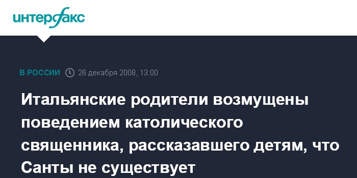 Итальянские родители возмущены поведением католического священника, рассказавшего детям, что Санты не существует