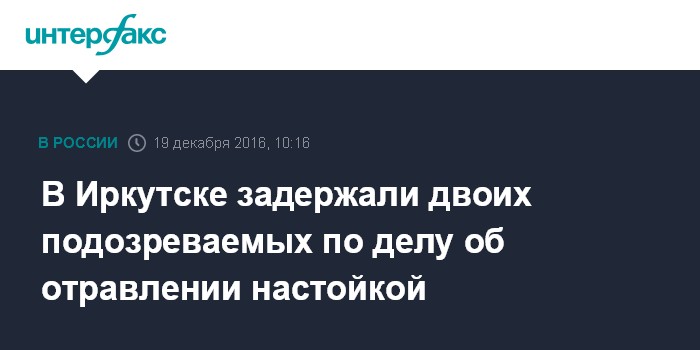 В Иркутске задержали двоих подозреваемых по делу об отравлении настойкой