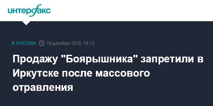 Москва. 19 декабря. INTERFAX.RU - В Иркутске ввели запрет на продажу технических спиртосодержащих жидкостей после массового отравления концентратом для ванн "Боярышник", в результате которого погибли 33 человека, заявил мэр города Дмитрий Бердников.
