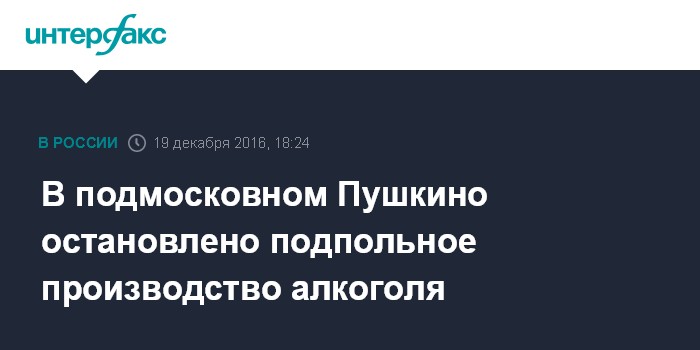 Москва. 19 декабря. INTERFAX.RU - Росалкогольрегулирования вместе с представителями силовых структур остановили подпольное производство алкогольной продукции в подмосковном Пушкино.