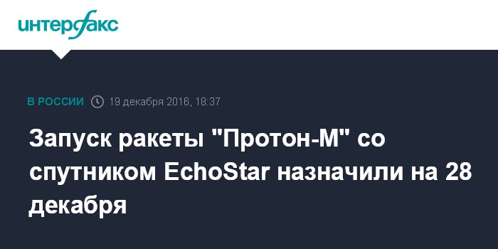 Запуск ракеты "Протон-М" со спутником EchoStar назначили на 28 декабря