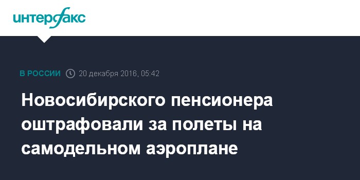 Новосибирского пенсионера оштрафовали за полеты на самодельном аэроплане