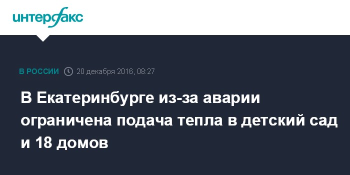 Москва. 20 декабря. INTERFAX.RU - Специалисты устраняют коммунальную аварию в Екатеринбурге, оставившую без тепла 18 жилых домов и детский сад, сообщает пресс-служба ГУ МЧС РФ по Свердловской области.