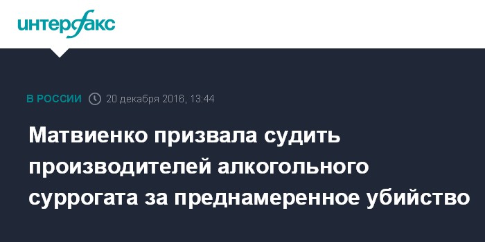 Москва. 20 декабря. INTERFAX.RU - Председатель Совета Федерации Валентина Матвиенко призвала найти и осудить производителей суррогатной настойки боярышника, от которой погибли люди в Иркутске.