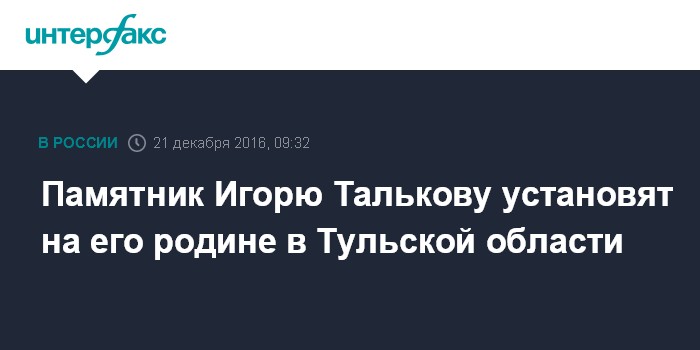 Москва. 21 декабря. INTERFAX.RU - В городе Щекино Тульской области в 2017 году откроют памятник певцу и композитору Игорю Талькову, сообщила пресс-служба областного правительства.