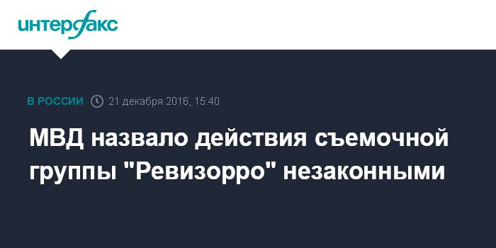 Москва. 21 декабря. INTERFAX.RU - МВД России дало юридические разъяснения по поводу неправомерности действий съемочной группы телепередачи "Ревизорро" и предупредило журналистов об ответственности за злоупотребление свободой средств массовой информации.