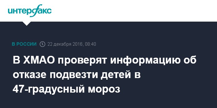В ХМАО проверят информацию об отказе подвезти детей в 47-градусный мороз