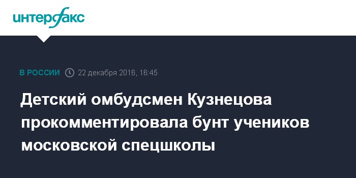 "Это локальная проблема, ее нужно локализовать и решать, она не носит системного характера. Это не бунт по всей стране, который чем-то аргументирован. Есть вопрос конкретного ребенка", - сказала Кузнецова "Интерфаксу" в четверг.