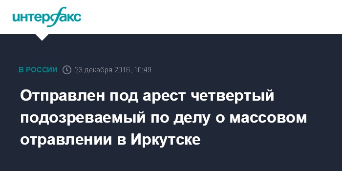Отправлен под арест четвертый подозреваемый по делу о массовом отравлении в Иркутске