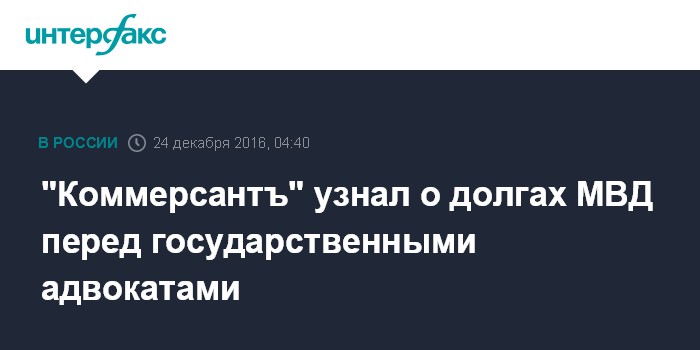 "Коммерсантъ" узнал о долгах МВД перед государственными адвокатами
