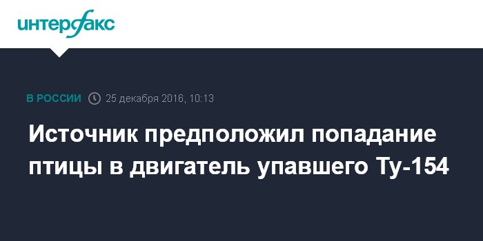 Источник предположил попадание птицы в двигатель упавшего Ту-154