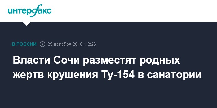 Власти Сочи разместят родных жертв крушения Ту-154 в санатории